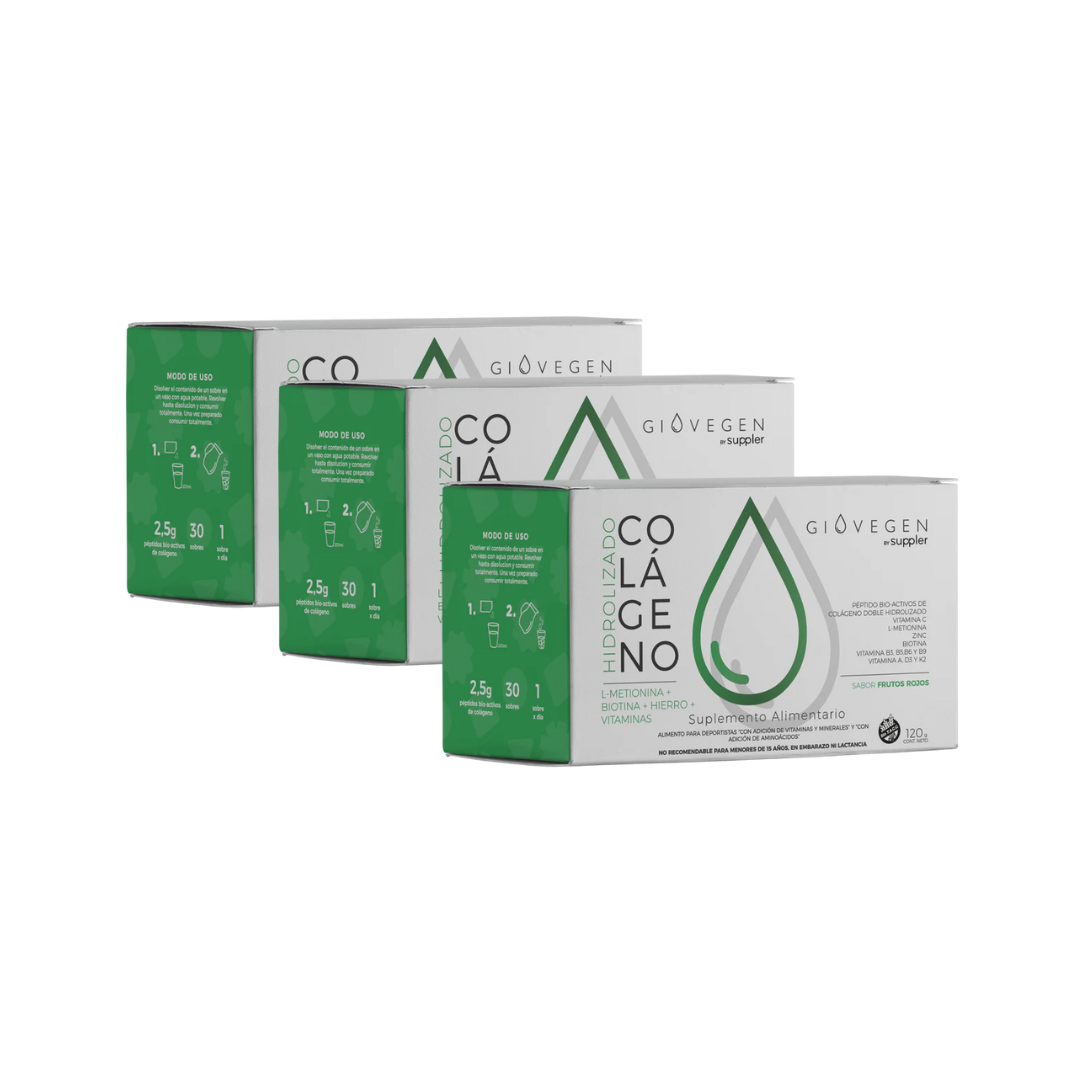 Colágeno Giovegen Péptidos Cabello & Uñas - Pack x3 (90 días de consumo)